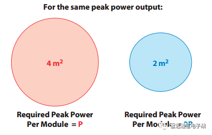 雷达系统TR组件设计需要综合考虑天线口径、T/R模块的输出功率以及T/R组件布局等因素,如为了实现同样的雷达探测性能且T/R组件个数相同,对于4m2口径天线,假定每个T/R组件的输出功率为P,那么对于2m2口径天线,每个T/R组件的输出功率为2P,如图所示。